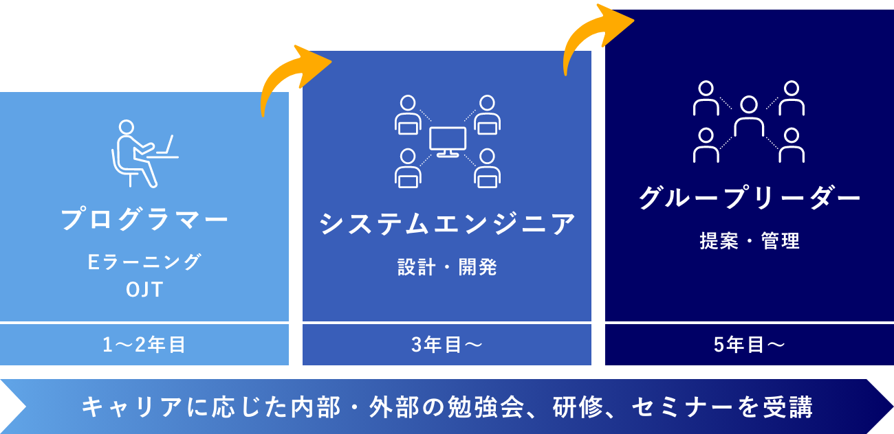 キャリアに応じた内部・外部の勉強会、研修、セミナーを受講